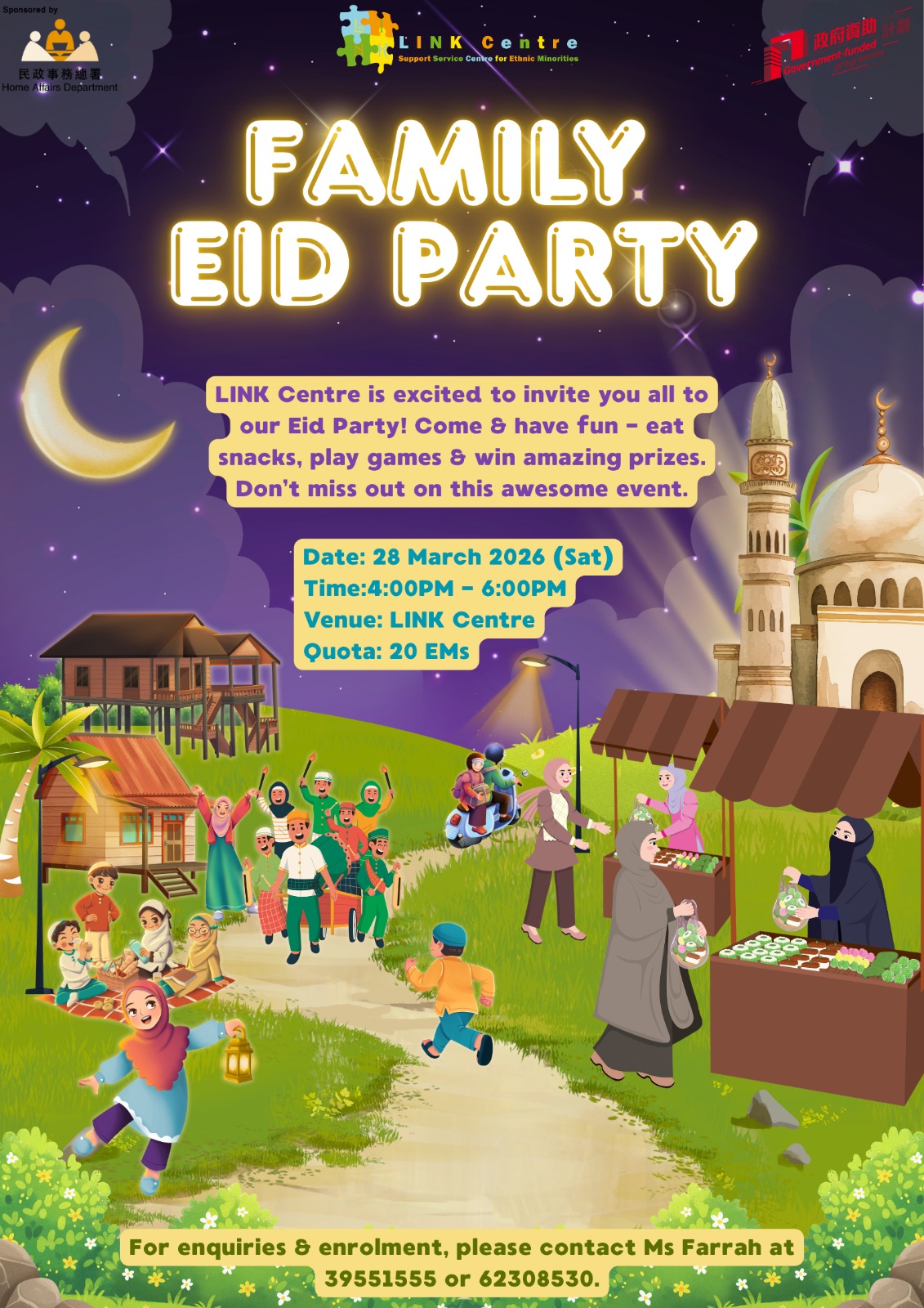 LINK Centre is excited to invite you all to our Eid Party! Come & have fun - eat snacks, play games & win amazing prizes. Don’t miss out on this awesome event.